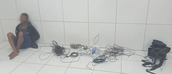 Segundo informações repassada pelo comandante do 11 Batalhão, Major Kraieski Lages, o acusado estava roubando os fios do prédio da empresa Oi telefonia.