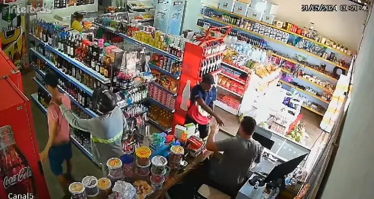Nas imagens é possível ver o momento em que a dupla manda os funcionários do supermercado deitarem no chão e levam todo o dinheiro. Informações apontam que os assaltantes subtraíram pouco mais de mil reais.