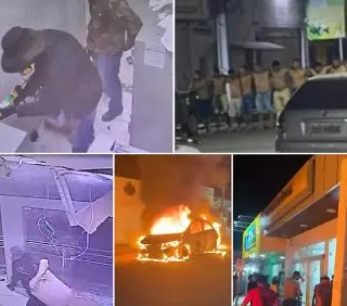 Nos vídeos, os bandidos fizeram diversos moradores reféns. Dentro do banco, usaram explosivos para ter acesso ao cofre e a uma grande quantidade de dinheiro.