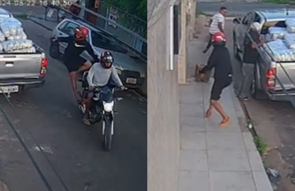 Nas imagens é possível observar o momento em que o garupa desce, saca uma arma de fogo e dispara cinco vezes contra o empresário, que estava acompanhado de uma mulher e de um homem descarregando produtos de uma caminhonete.