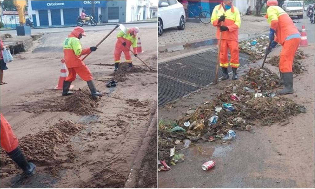 A Secretaria Municipal de Limpeza amanheceu o dia em Timon trabalhando muito para deixar a cidade limpa após as fortes chuvas ocorridas no domingo último.