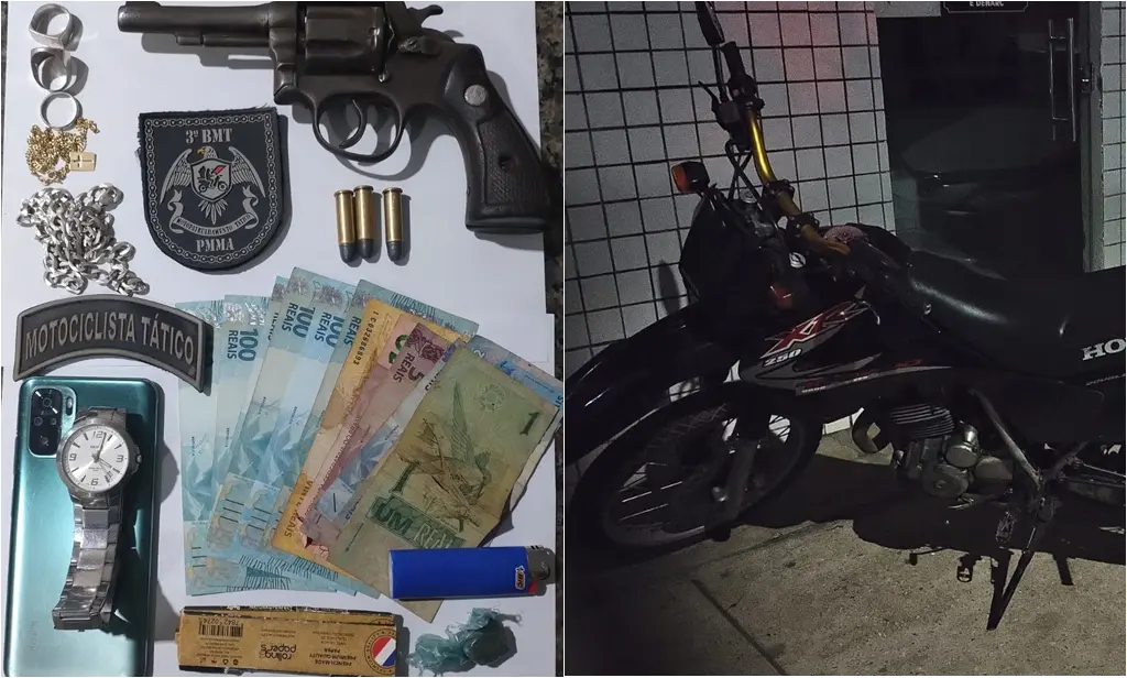 Homem é preso com arma de fogo, droga e dinheiro em Timon; moto é apreendida