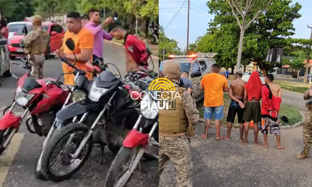 O comandante da operação do Batalhão Especial de Policiamento do Interior da Polícia Militar, sargento Frota, informou que, durante uma ação policial realizada em Teresina, um grupo de seis suspeitos foi preso com diversos itens ilícitos, incluindo celulares e motocicletas roubadas. Entre os detidos, quatro possuem antecedentes criminais e três são adolescentes.
