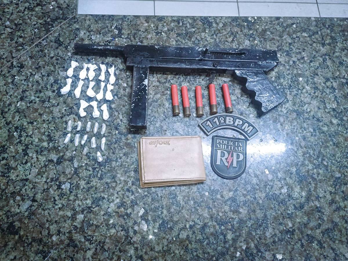 Durante a revista no local, os policiais encontraram uma arma de fogo longa, de fabricação caseira, mas altamente letal, carregada com cinco munições intactas de calibre .38, escondida no quintal da residência. Além da arma, porções de substâncias análogas à cocaína e maconha também foram apreendidas. O proprietário da casa foi conduzido à Central de Flagrantes, junto com todo o material encontrado.
