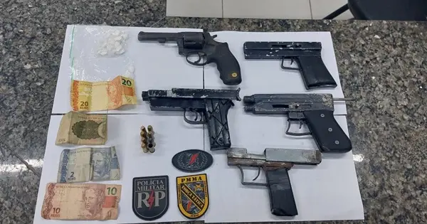 Na ocorrência da festa e no caso do homicídio os policiais fizeram várias apreensões como armas, dinheiro e drogas.