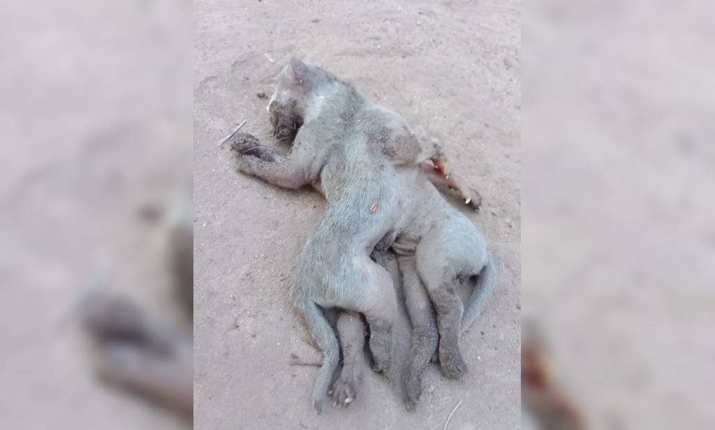 O gato cinza pareceu nascer com um irmão incorporado ao corpo, apesar de ter, aparentemente, apenas uma cabeça.