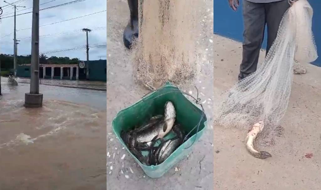 Nas imagens obtidas pelos Conecta Piauí é possível ver a água que se acumulou no trecho da via, impossibilitando o tráfego de veículos. Um pescador, usando uma rede de pesca, consegue pegar vários peixes no acúmulo de água.