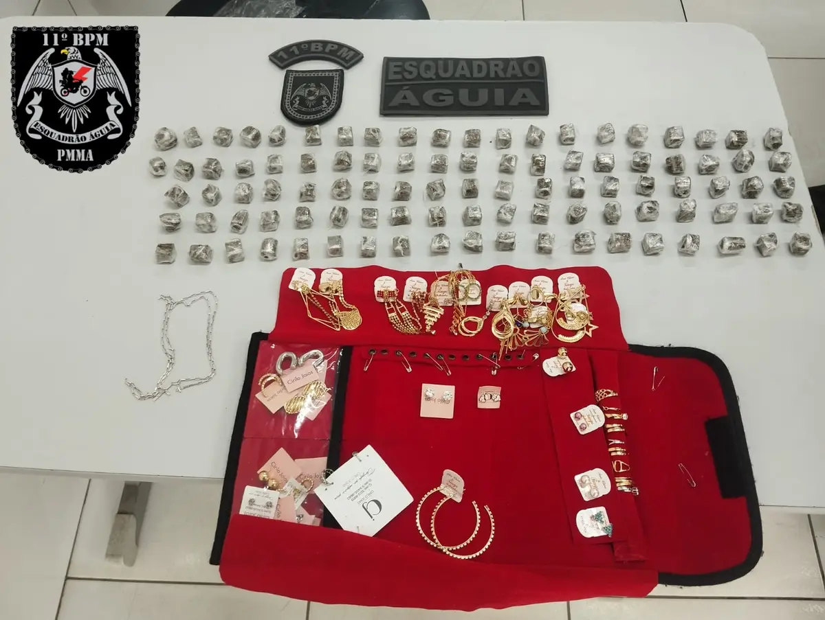 Joias e 97 invólucros de drogas são apreendidos com homem em casa de Timon