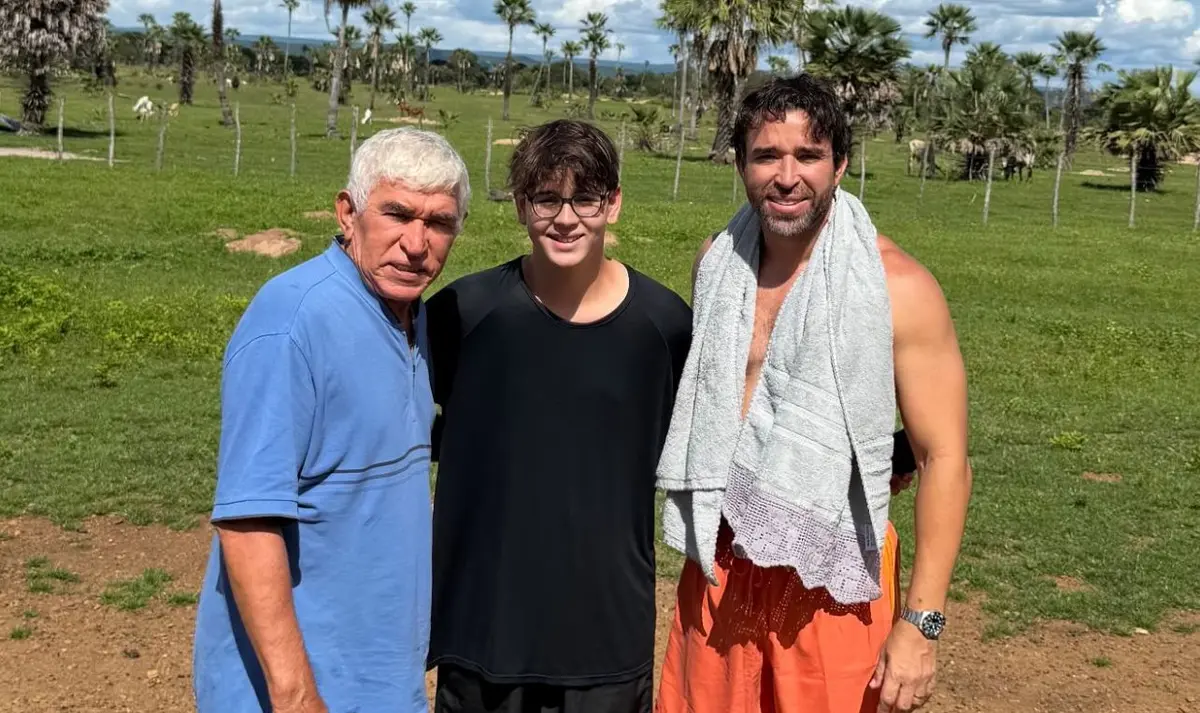 Deputado Estadual Marden Menezes com o pai e o filho em dia de passeios e banho