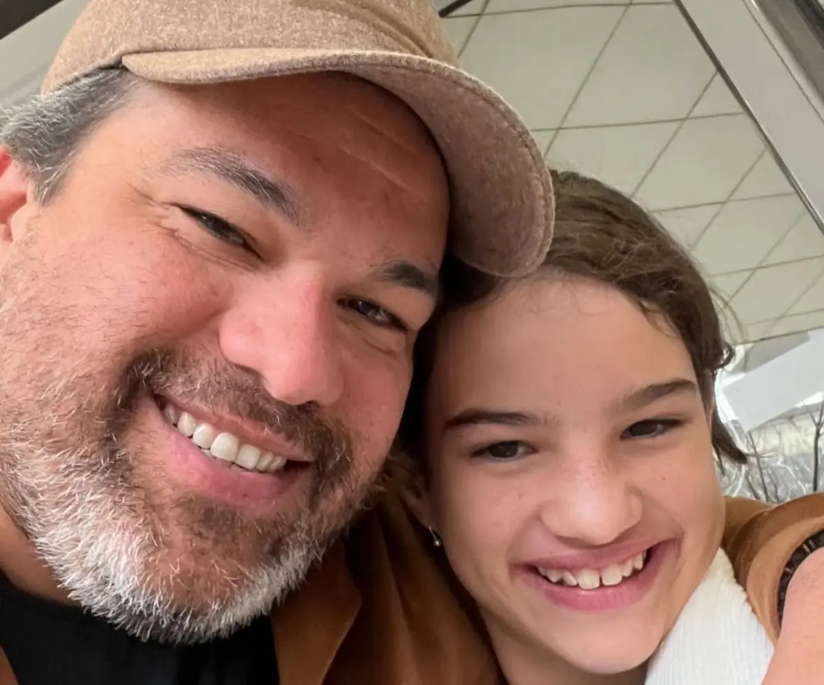 Empresário Rafael Freitas e a filha Pietra, em clique especial durante viagem