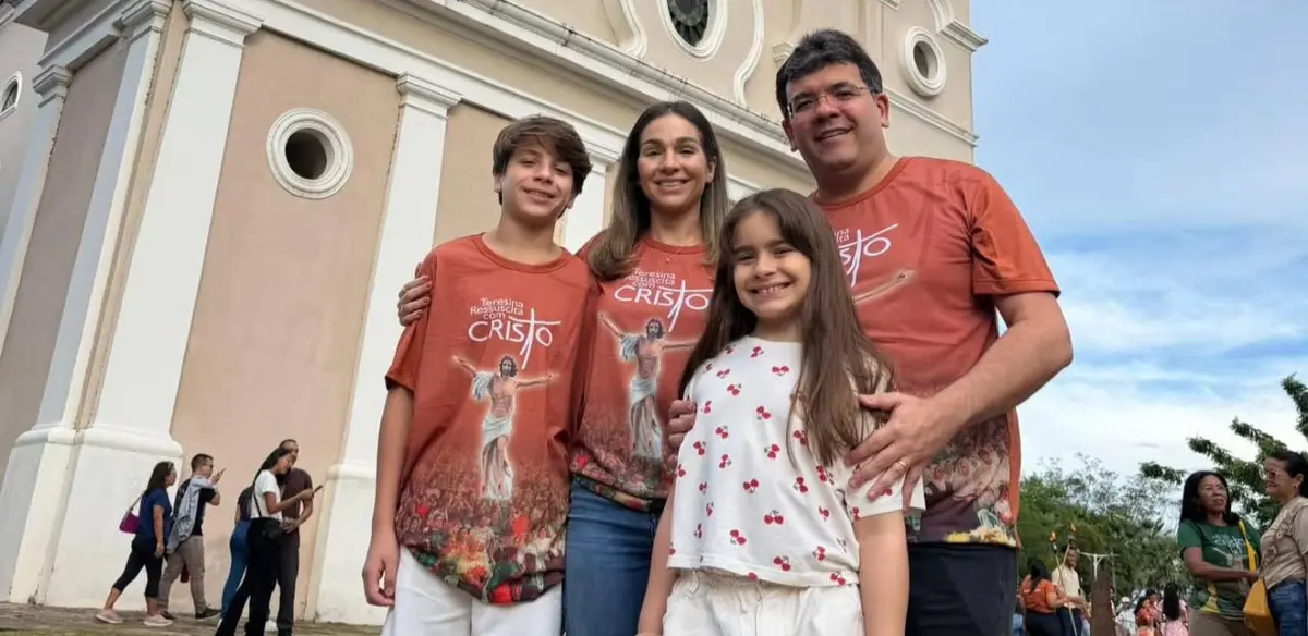 Em família, eles estiveram acompanhando missa e procissão, durante o domingo de Páscoa!O Governador do Estado do Piauí, Rafael Fonteles e a Primeira-dama e Coordenadora do Pacto pelas Crianças do Piauí. Isabel Fonteles, com os filhos Thomaz e Elisa, estiveram acompanhando missa e procissão, durante o domingo de Páscoa!