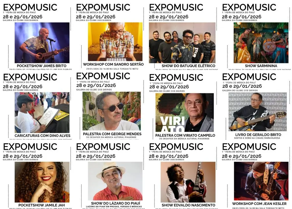 1ª Feira de Música do Piauí, propõe uma imersão completa no universo musicalTeresina recebe, nos dias 28 e 29 de janeiro, a I EXPOMUSIC – 1ª Feira de Música do Piauí, um evento inédito no estado que propõe uma imersão completa no universo musical. Com programação ao longo de todo o dia e entrada gratuita, a feira acontece no Complexo Clube dos Diários e reúne shows, palestras, exposições, oficinas, lançamentos de livros e ações voltadas à profissionalização do setor.