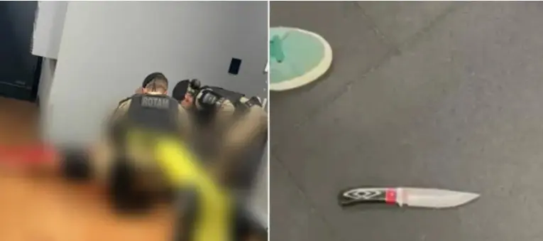 Um policial militar que estava de folga conseguiu conter o agressor até a chegada de uma equipe da Polícia Militar, que efetuou a prisão do suspeito em flagrante.