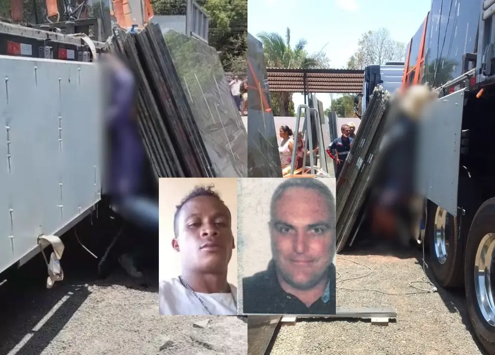Testemunhas relataram que, no momento em que as placas eram retiradas do caminhão, parte da carga se desprendeu da estrutura de sustentação e atingiu violentamente os dois trabalhadores, prensando-os contra a lateral do veículo.
