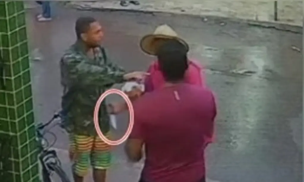 Câmeras de segurança registraram o momento do crime. As imagens mostram a vítima discutindo com um homem de roupa camuflada na entrada do estabelecimento. Segundos depois, outros dois indivíduos aparecem com facas. Um deles corre para dentro do comércio, enquanto os outros continuam a discussão na frente do local.