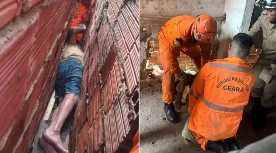 Um idoso de 79 anos foi resgatado após ficar mais de 9 horas preso entre duas paredes no bairro Palestina, em Canindé, a 117 quilômetros de distância de Fortaleza, na tarde desta segunda-feira (26/02).