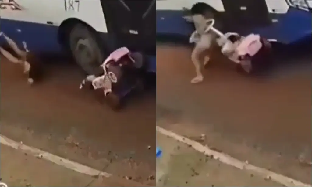 Câmeras de segurança registraram o momento em que a mãe caminhava com o carrinho pela ruaUm motorista de ônibus por pouco não atropelou uma mulher e sua filha, que estava em um carrinho de bebê, enquanto tentava desviar de um buraco em uma rua do bairro Milton Figueiredo, em Várzea Grande, Mato Grosso. O incidente ocorreu no último dia 7 e ganhou grande repercussão nas redes sociais nesta quinta-feira (16/01), após imagens do ocorrido viralizarem.