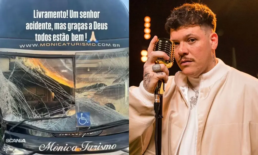 O artista também compartilhou uma foto mostrando a parte frontal do ônibus, que ficou bastante danificada, com vidros estilhaçados. Apesar do susto, Ferrugem garantiu que a agenda de shows será mantida. "Não aconteceu nada que impeça a nossa apresentação de hoje em Arraial do Cabo. Daqui a pouco a gente se encontra", completou.