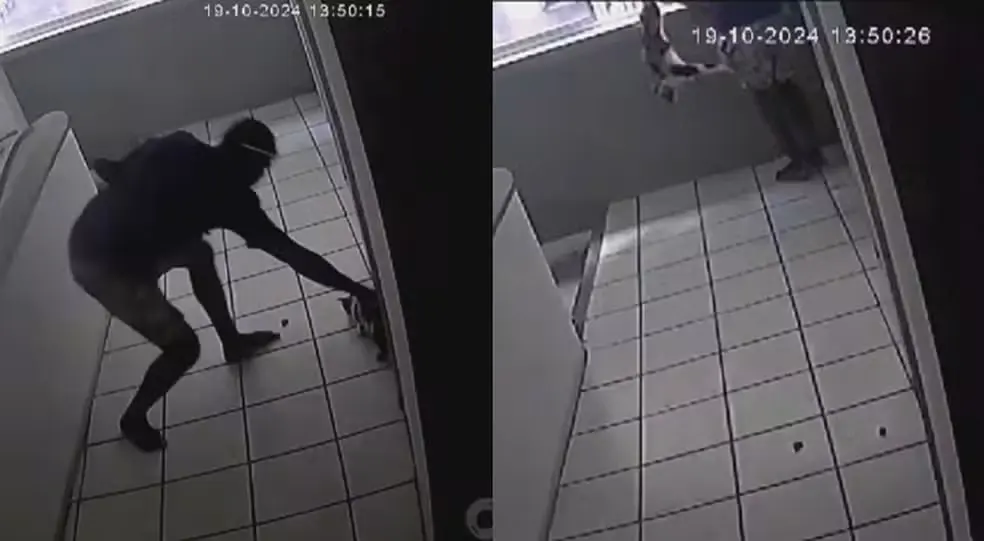 A polícia foi acionada, mas ao chegar no local o criminosos já havia fugidoCâmeras de segurança registraram o momento em que um homem, ainda não identificado, agride e arremessa um gato do 8° andar de um prédio, no Recife, PE. A polícia foi acionada, mas ao chegar no local o criminosos já havia fugido.