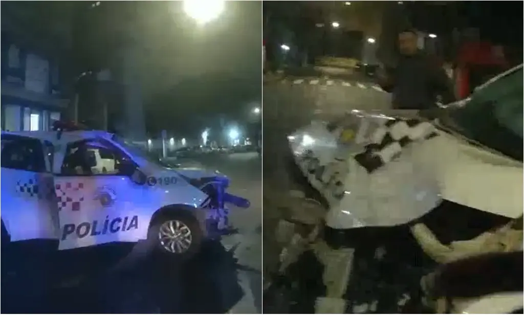 A frente da viatura ficou destruída com o acidente; envolvidos foram afastados da corporaçãoUm policial militar se envolveu em um acidente de trânsito após chamar um colega, também agente de segurança, para um "racha" em São Paulo (SP). Imagens foram registradas com a câmera corporal vinculada à farda do PM. O acidente aconteceu no dia 13 de julho de 2024, mas o vídeo só foi divulgado nesta quarta-feira (06/11).