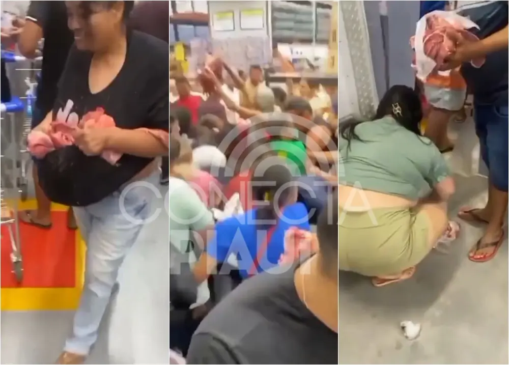 Uma promoção de carnes em uma unidade do Mix Mateus terminou em tumulto e cenas de desespero. Clientes chegaram a pegar peças que caíram no chão e até guardar carne na própria roupa para não ficar sem. Teve gente que perdeu até o chinelo no empurra-empurra. A cidade onde ocorreu o episódio não foi informada, mas situações assim já se repetiram outras vezes em lojas da rede. Com o preço da carne nas alturas, o cenário expõe tanto o apelo da promoção quanto o tamanho da dificuldade de quem tenta colocar o alimento no prato.