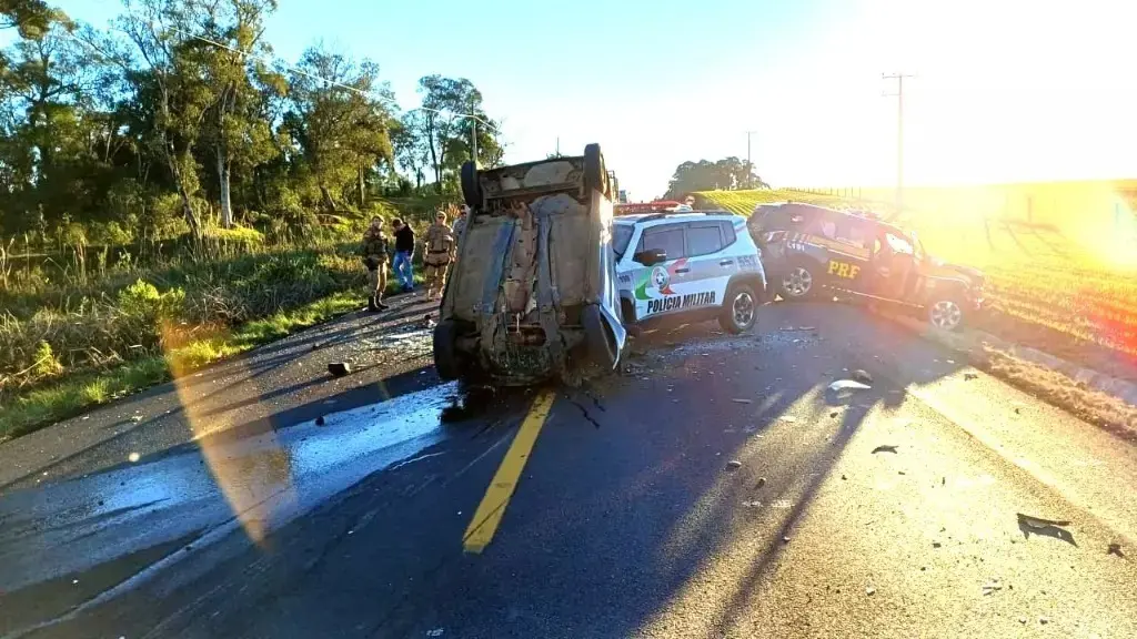 O meliante havia desobedecido todas as ordens de parada e começou a realizar manobras perigosasUm motorista que estava em fuga em um carro Renault Clio morreu após atingir o carro da PRF e capotar. O caso aconteceu na BR-280, em Irineópolis (SC), nesta segunda-feira (1°/07).