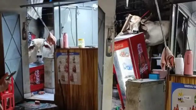 Vaca cai sobre telhado de bar no Ceará e causa destruição