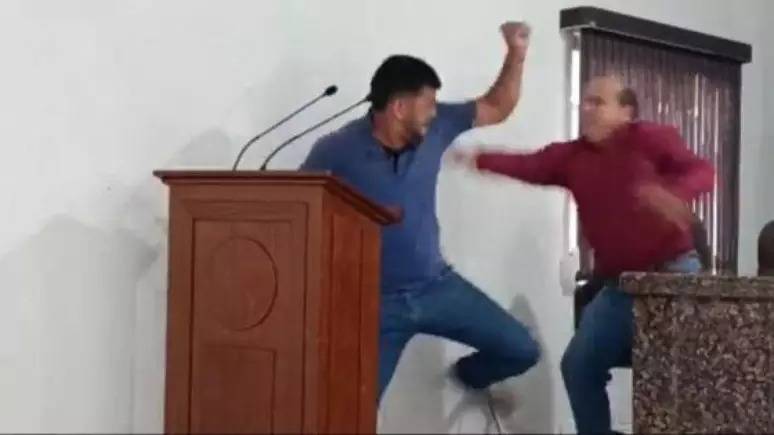 Vereadores trocam murros e pontapés durante sessão na Câmara; veja vídeo
