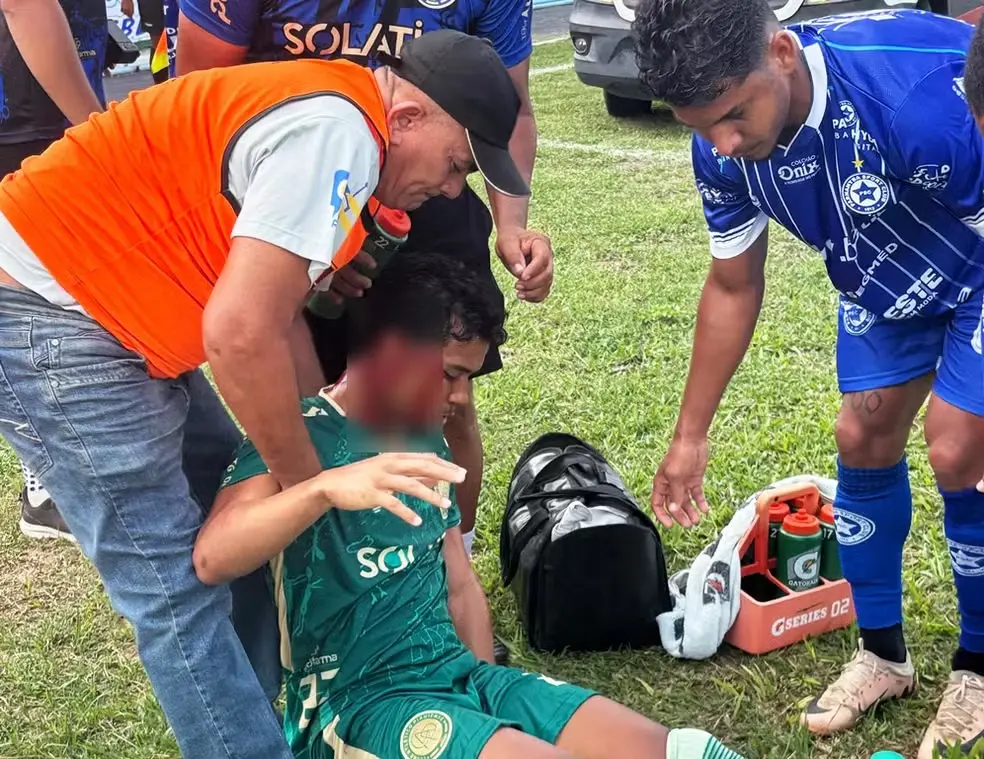 Atleta do Atlético-PI escorrega e bate rosto em poço durante jogo contra Parnahyba