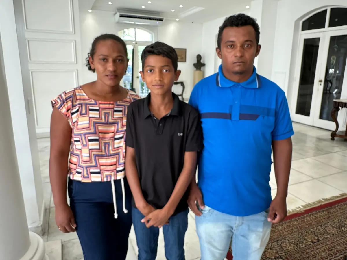 Criança do Piauí que viralizou treinando salto com vara visita o Palácio de Karnak