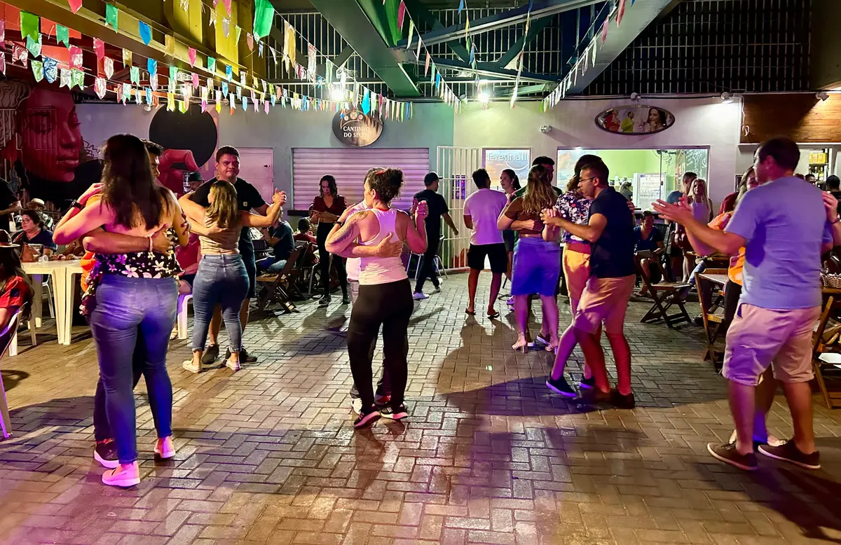 Dançar junta até casais. É o caso de Elza Maria e Sérgio Melo, que estão juntos há mais de 25 anos, se conheceram dançando forró. Ainda juntos, Sérgio conta que a prática só traz benefícios. "Nós nos conhecemos no forró, há mais de 25 anos atrás. Faz bem para tudo, faz bem até para nossa cultura, perpetua a nossa cultura", comenta o forrozeiro.