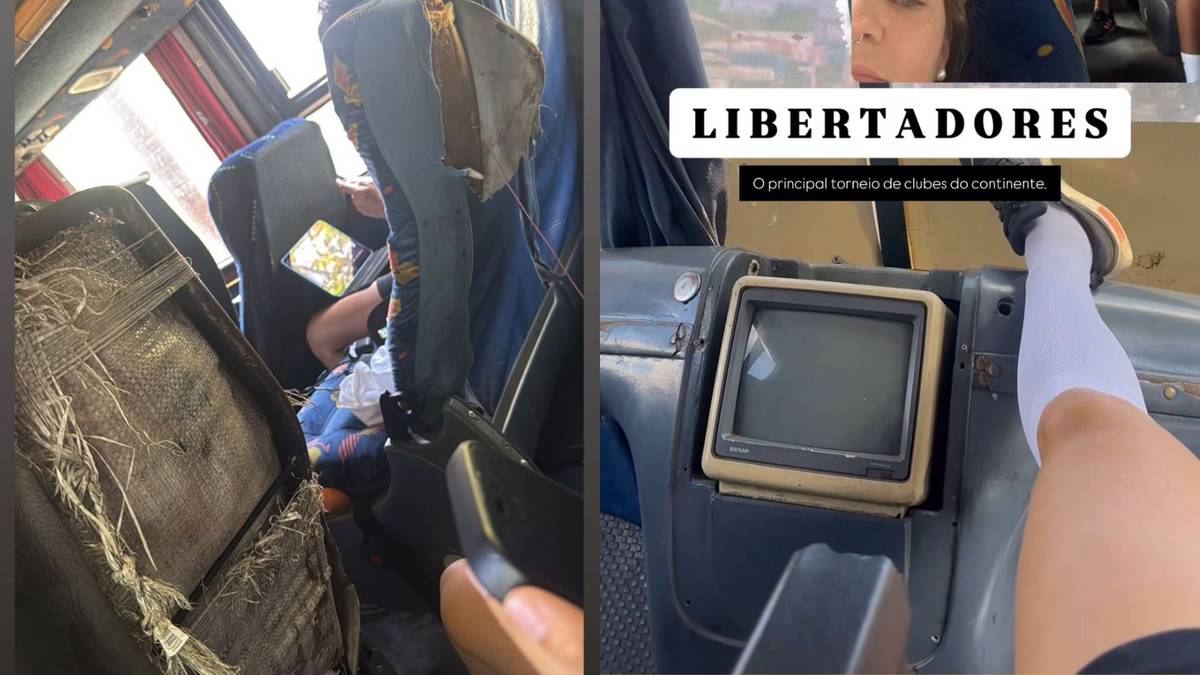 Veículo velho, bancos rasgados e ar condicionado com defeito estão entre as reclamaçõesA meia-atacante do Corinthians Gabi Zanotti utilizou as redes sociais para mostrar e denunciar as condições do ônibus em que as jogadoras estavam sendo transportadas. O veículo foi cedido pela Conmebol para a locomoção da equipe brasileira que está no Paraguai, onde disputou no último sábado (11/10) a partida contra o Olimpia, pelas quartas de final da Libertadores.