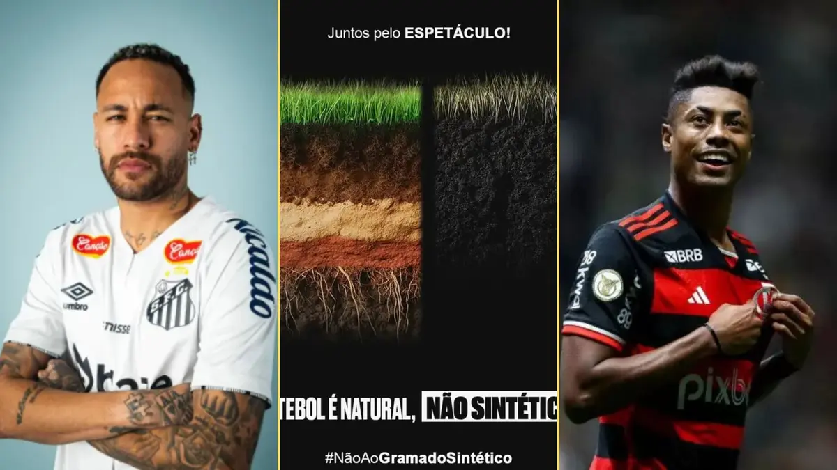Entre os atletas estão Neymar, Bruno Henrique e Philippe CoutinhoO fim do gramado sintético nos estádios de futebol do Brasil é o mote da campanha protagonizada nas redes sociais por grandes nomes do futebol, como Neymar, Bruno Henrique, Lucas Moura, Philippe Coutinho, Thiago Silva e Gabigol, entre outros. Nesta terça-feira (18), eles publicaram um comunicado em rede social, em que dizem estar preocupados com “o rumo que o futebol brasileiro está tomando” e classificam como “absurdo o gramado sintético nos campos”.