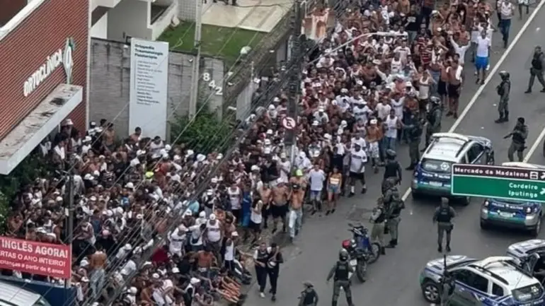 Vídeos publicados nas redes sociais mostram correria e pancadaria nos arredores da Real TorreNa manhã deste sábado (1º), torcidas organizadas de Sport e Santa Cruz protagonizaram um violento confronto nas ruas de Pernambuco, horas antes do clássico das multidões, marcado para as 16h30, no Estádio Arruda, pela sexta rodada do Campeonato Pernambucano de 2025.