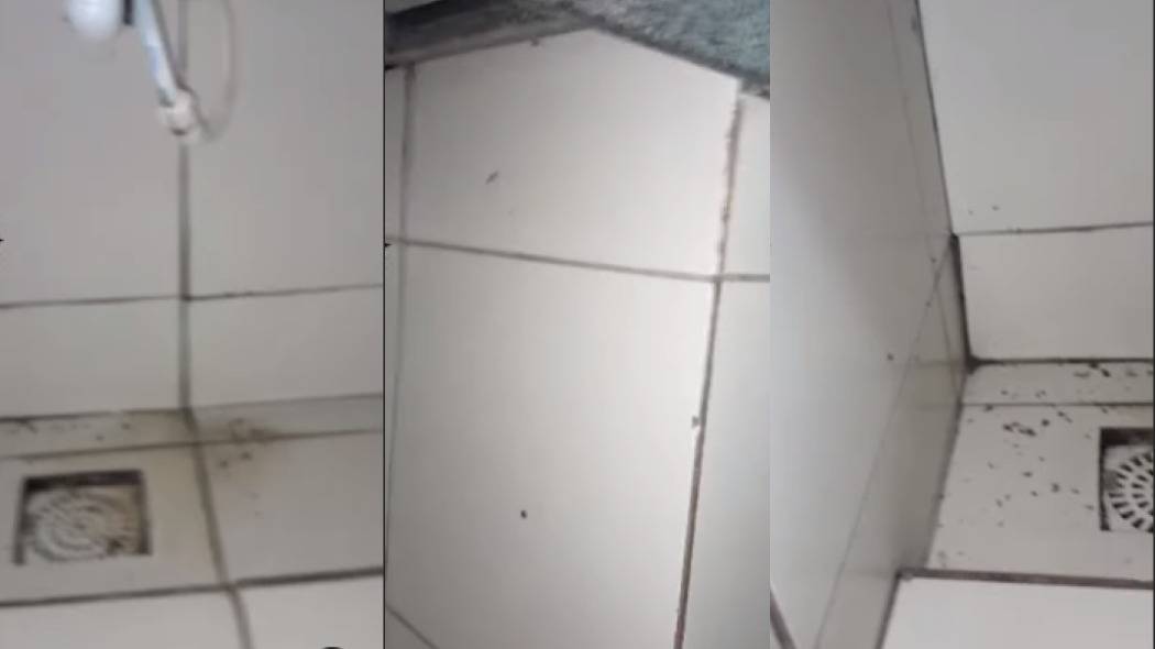 No vídeo, ela mostra um dos banheiros que está cheio de barata. Segundo ela a ala dos pacientes também está empestada do inseto.