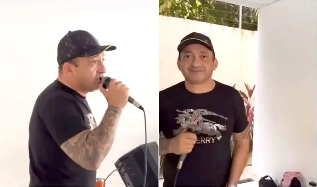Os registros foram feitos pelo amigo Mateus Caseirão, que afirmou que o apresentador estava fazendo um 'bico' como cantor.
