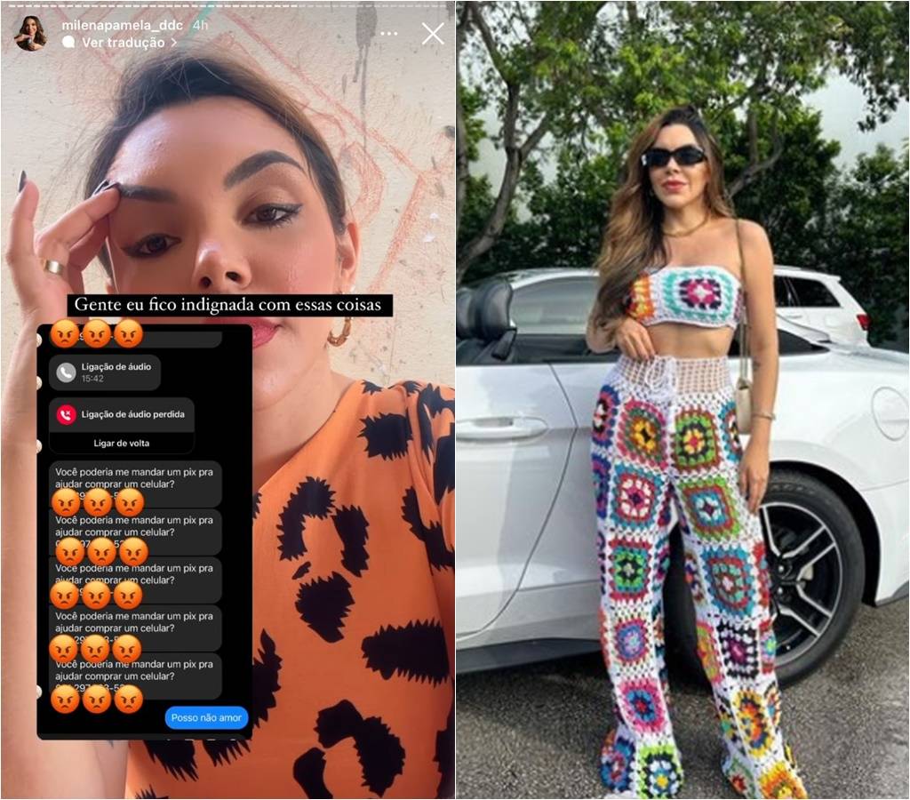 "Quando eu vejo essas coisas eu fico revoltada, a pessoa vai no Instagram e fica ligando insistentemente pra pessoa fazer um PIX pra pagar um celular. Eu faço a minha parte, eu não faço é mostrar aqui, quem sabe um dia eu mostro, às vezes você ajuda e desperta na outra pessoa em ajudar", afirmou em vídeo Milena.