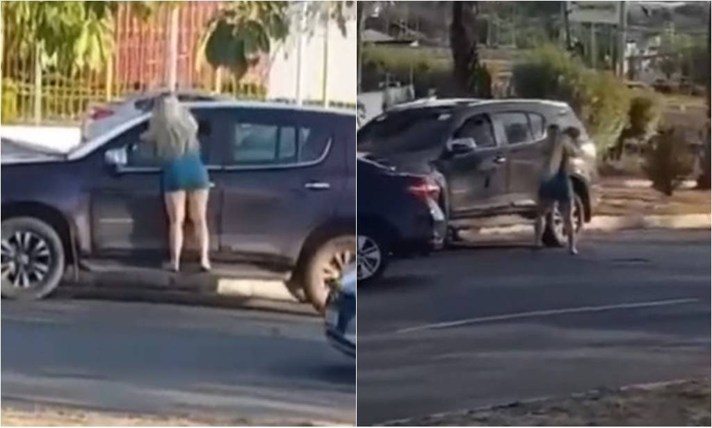 Mulher é flagrada destruindo veículo no meio de avenida em Teresina