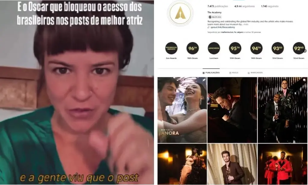 Influencer acusa Oscar de bloquear acesso dos brasileiros em posts de Melhor Atriz