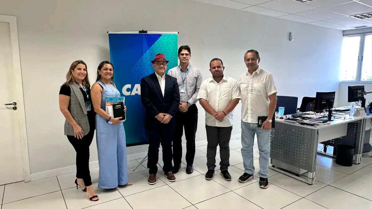A reunião teve como foco a busca por parcerias e recursos para fortalecer a realização do eventoO prefeito Abdoral Melo esteve na Caixa Econômica Federal ao lado dos secretários de Cultura, Douglas Farias, e de Educação, Simone Magalhães, além do assessor Carlos Roberto, para dialogar com Leo Torres Lima e Giselle Fonsêca, da Superintendência Executiva de Governo.