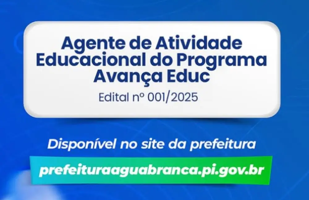 A Prefeitura de Água Branca anunciou uma nova convocação de candidatos(as) aprovados(as) no Teste Seletivo para o cargo de Agente de Atividade Educacional do Programa Avança Educ, referente ao Edital nº 001/2025.