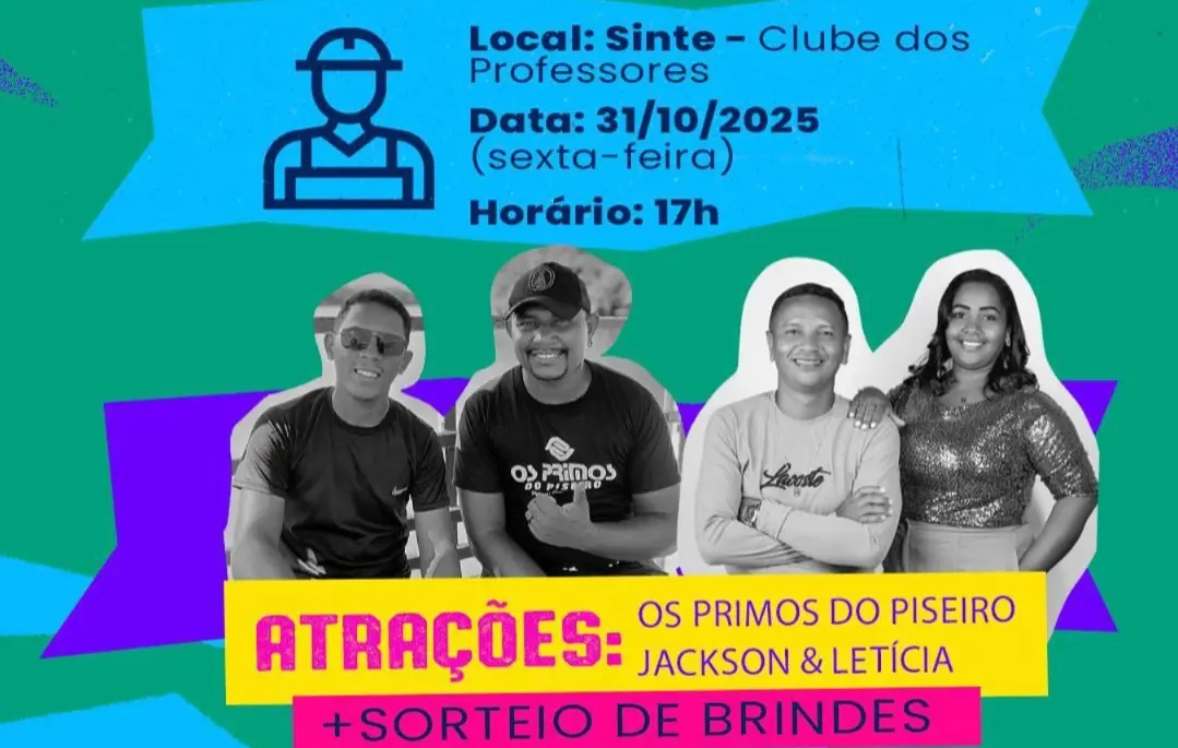 A programação contará com shows de Os Primos do Piseiro e Jackson & Letícia, prometendo uma noite de confraternização e entretenimento. Além das apresentações musicais, também será realizado um sorteio de brindes para os servidores presentes.