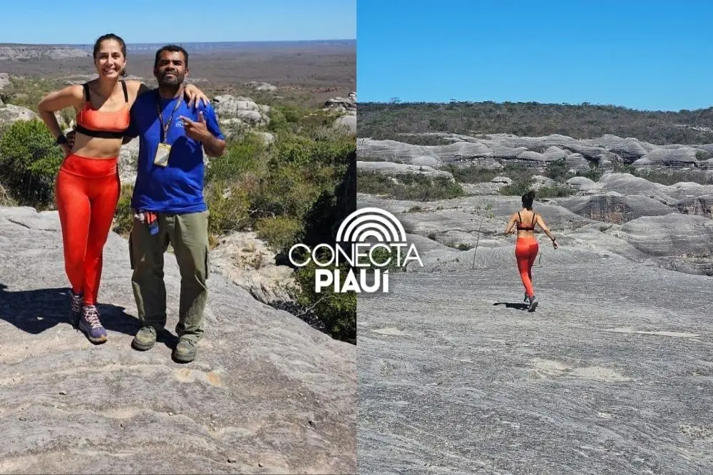 A atriz Camila Pitanga esteve em Caracol para conhecer o Parque Nacional da Serra das Confusões. Acompanhada do guia Jadiel, ela percorreu trilhas e contemplou a diversidade da Caatinga, reforçando a importância da preservação do bioma.