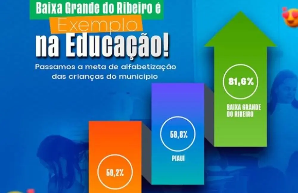 Cidade salta de 48,6% para 81,6% em um ano e ultrapassa meta do MEC para 2030Baixa Grande do Ribeiro, no sul do Piauí, acaba de alcançar uma das maiores conquistas educacionais do estado — e do Brasil. Em 2024, o município atingiu 81,6% de crianças alfabetizadas na idade certa, superando com folga a meta estabelecida pelo Ministério da Educação (MEC) para o ano de 2030.
