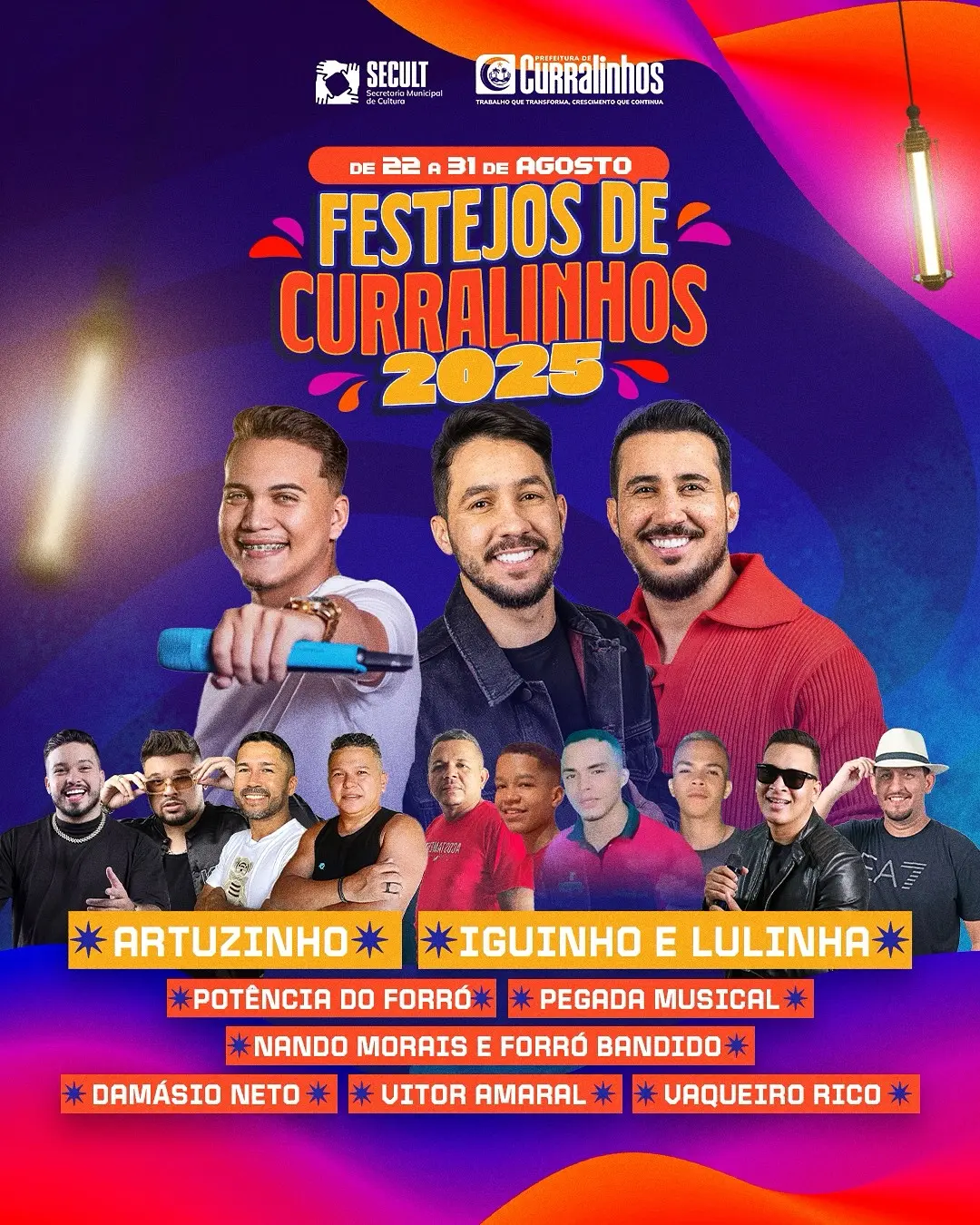 Evento será realizado de 22 a 31 de agosto com missas, procissões, corridas e grandes showsA Prefeitura de Curralinhos anunciou a programação oficial dos Festejos de 2025, que ocorrerão entre os dias 22 e 31 de agosto. A celebração, tradicional no município, reunirá atividades religiosas, culturais e musicais, prometendo atrair moradores e visitantes para dias de devoção, lazer e confraternização.