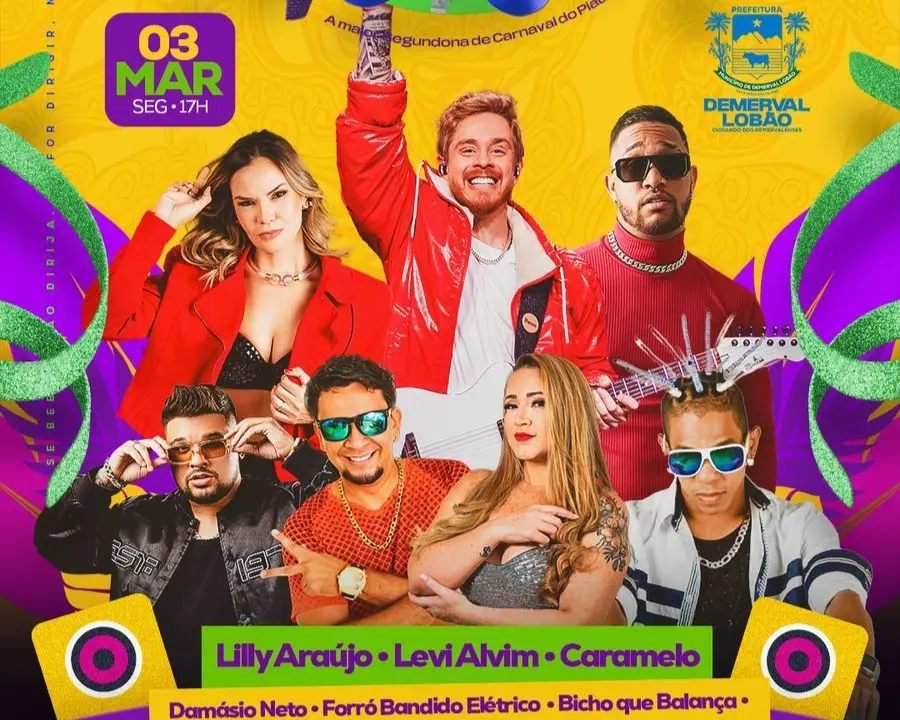 A programação conta com grandes atrações que prometem agitar o públicoNo dia 03 de março, a cidade será palco da tradicional Segundona de Carnaval, um dos eventos mais aguardados pelos foliões do Piauí. A partir das 17h, a Arena de Eventos, localizada atrás do Ginásio Poliesportivo Mão Santa, será tomada por muita música, alegria e animação.