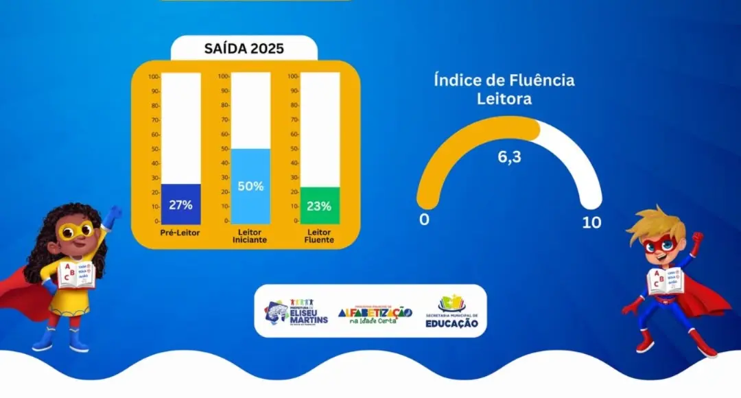 Avaliação de 2025 aponta crescimento nos níveis de leitura dos alunosO município de Eliseu Martins vem apresentando um crescimento significativo nos índices de leitura fluente dos Alunos da rede municipal de Educação, conforme os dados da Avaliação de Fluência Leitora 2025.