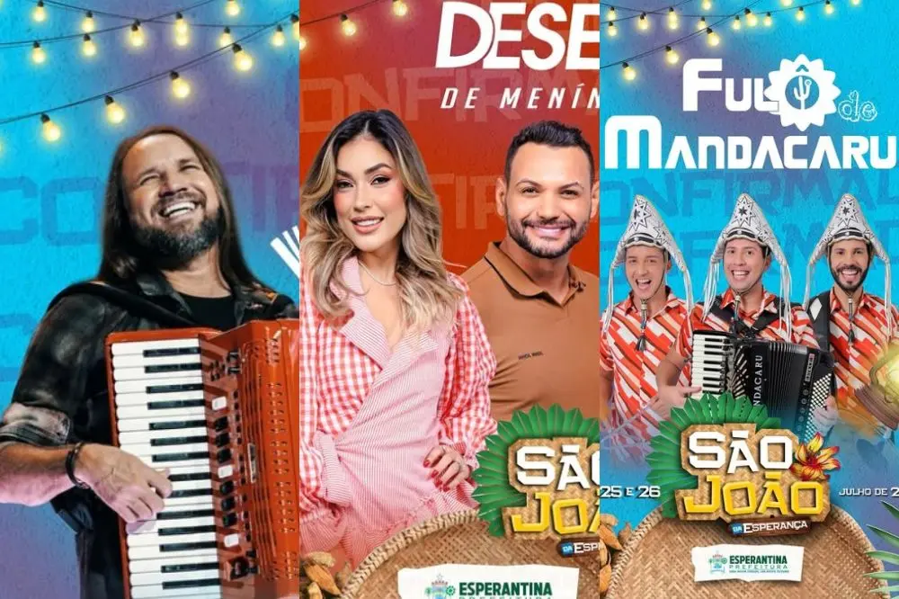 Evento ocorre de 24 a 26 de julho e terá grandes shows como de Dorgival Dantas e Desejo de MeninaA Prefeitura de Esperantina divulgou, nesta semana, a programação oficial do São João da Esperança 2025, que será realizado nos dias 24, 25 e 26 de julho, na Avenida Ministro Petrônio Portela, no espaço do antigo Hotel Rimo. O evento, tradicional no calendário cultural do município, promete atrair grande público com shows musicais, comidas típicas, segurança reforçada e uma estrutura completa para receber toda a população.