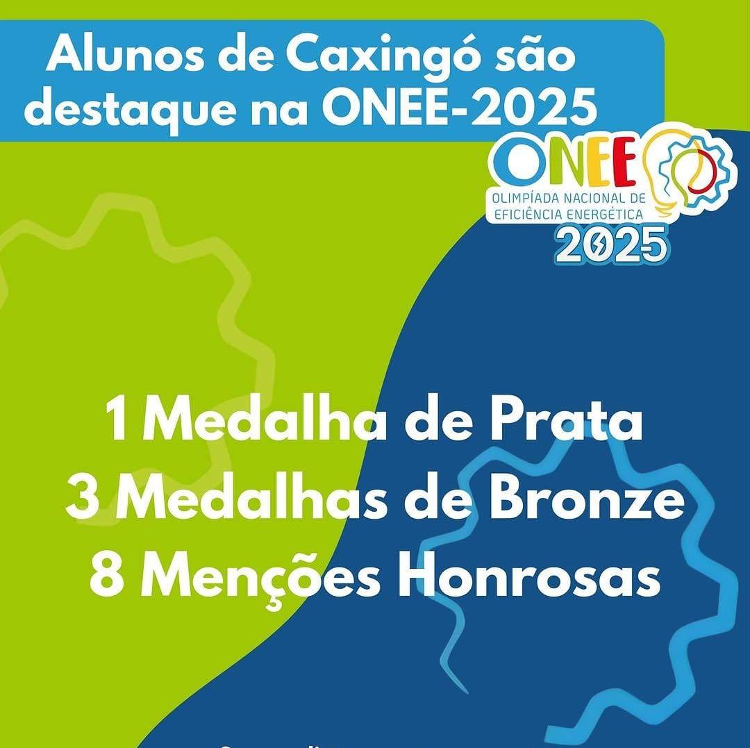 Alunos de quatro escolas municipais conquistam medalhas e menções honrosas na ONEE 2025A Secretaria Municipal de Educação de Caxingó (PI) celebrou o desempenho de seus estudantes na Olimpíada Nacional de Eficiência Energética – ONEE 2025. A participação rendeu ao município medalhas de prata e bronze, além de diversas menções honrosas, evidenciando o compromisso das escolas locais com a qualidade do ensino.