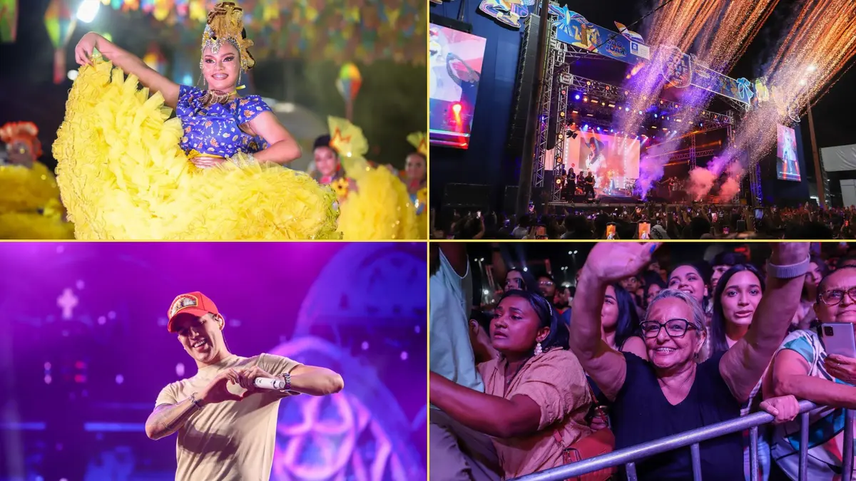 A primeira noite foi marcada por uma celebração vibrante da cultura local. Grupos como Banda Beija-Flor II, Trio Chapéu de Couro, Quadrilha Junina Pinga Fogo, Carimbó de Sinhá e os tradicionais bumba-meu-bois Brilho da Ilha e Riso da Mocidade subiram ao palco. Encerrando a noite, a banda Xenhenhem colocou o público para dançar com muito forró e animação.